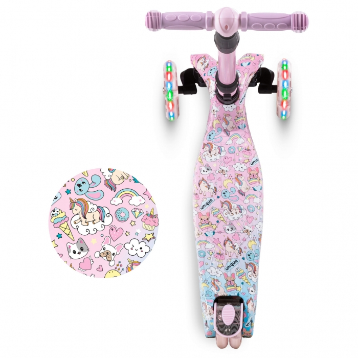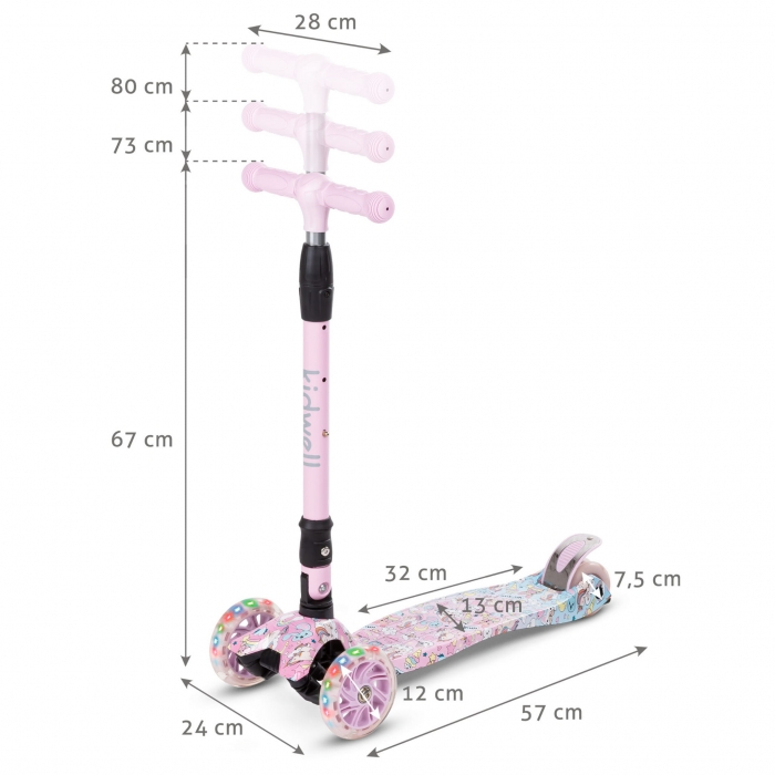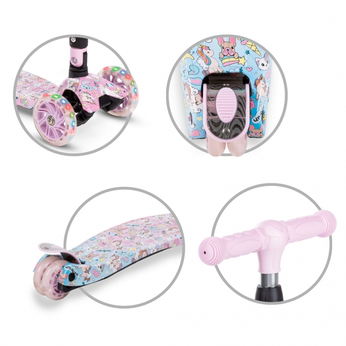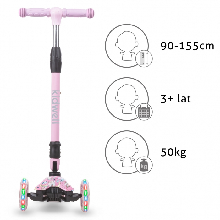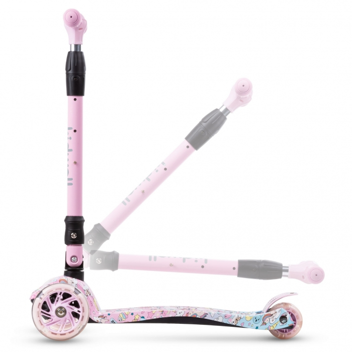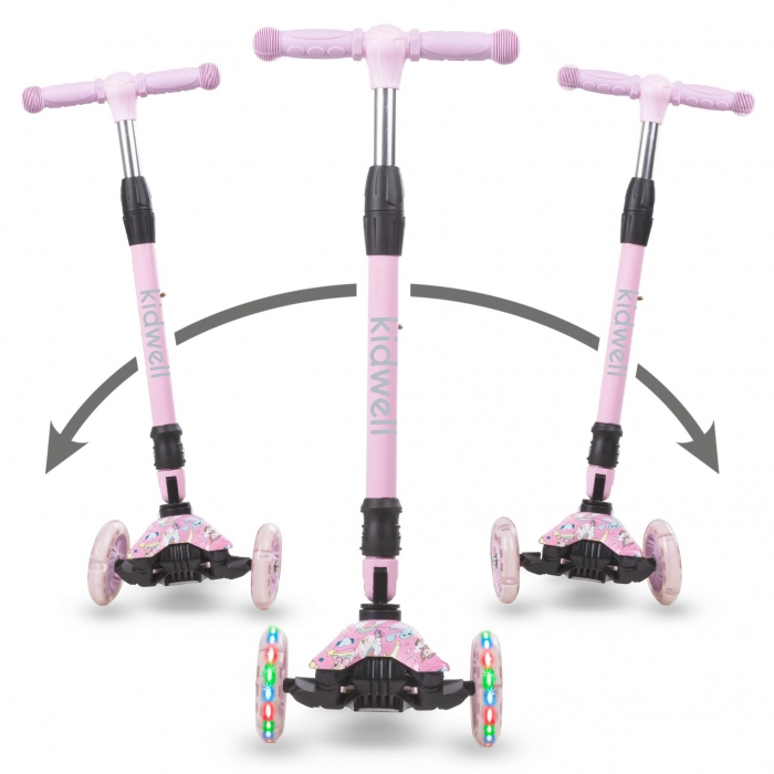 Trotineta VENTO cu trei roti este perfect echilibrata, stabila si va deveni cu siguranta partenerul de joaca al copilului tau. Rotile cu LED iluminate si designul interesant vor incanta fiecare mic utilizator.